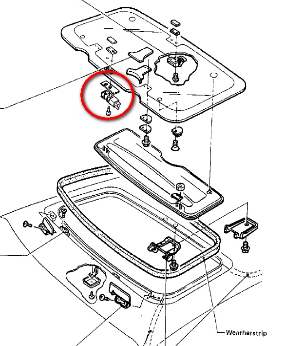 1. ventilátor topení 2. zámek střešního okna 3.a plastový panty kde drží zacvaklý zadní plato...