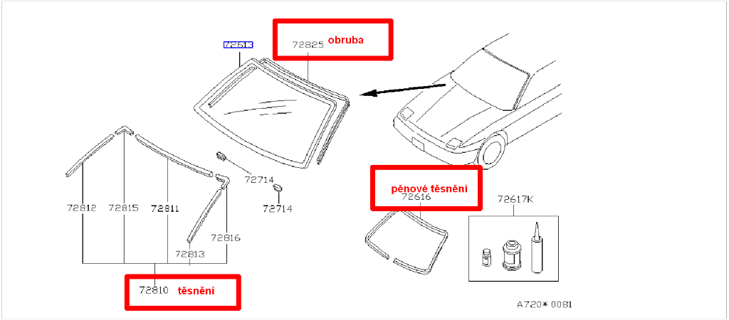 těsnění čel. skla - 7275052F10 - 8903,- s DPH (sada)