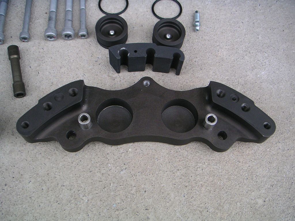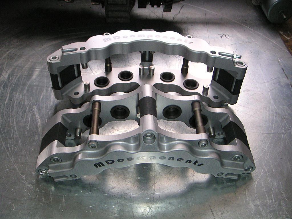 tak jsem pořídil brzdy MDC nový model i na zadek at je to tak nějak stejné...předekzadek v prenatální podobě bez barvymusím říci, že už dlouho jsem neměl v ruce tak pěkný výrobek...skvělý materiál, špičkový elox, vynikající zpracování...umí i nerezové pístky, brzdiče se dají použít na jakoukoliv tlouštku kotouče díky vyměnitelným mezikusům...destičky je možno vybrat buď Ferodo DS 2500, nebo DS 3000 race. 2500 nic extra, brzdí to ale nelíbí se mi otěr kotouče, spíš se to leští a tím pádem zbytečně hřeje. Ovšem 3000 je jiné kafe, tam už ten kotouč vypadá jak má....nedávno jsem známému aplikoval EBC yellow stuff a ty s MDC litinou fungují na výtečnou...