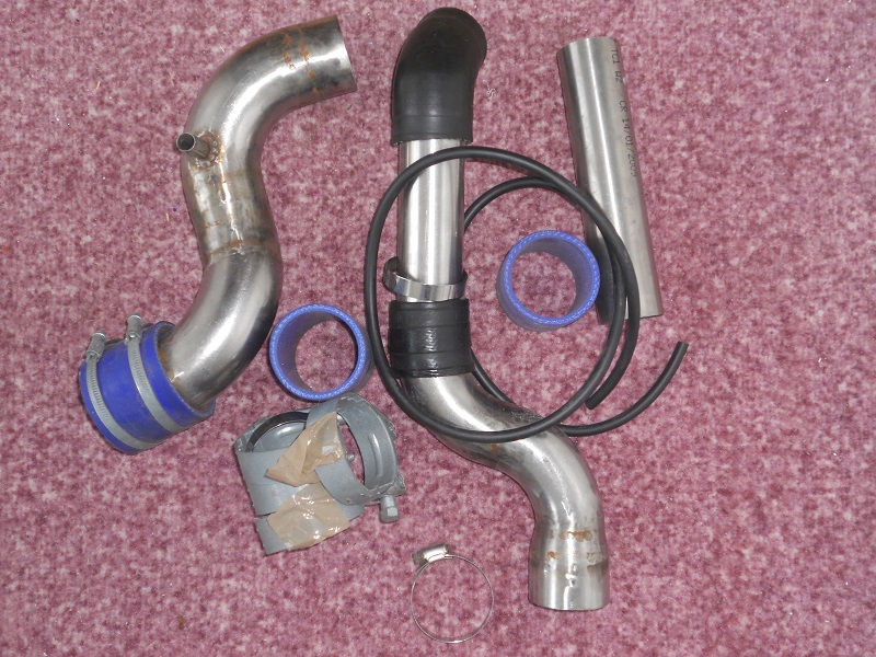 Intercooler + nerez trubky, silikonove spojky 2ks a spony. Cena 4000kč